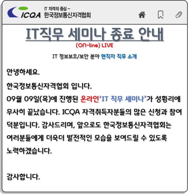 IT(정보보호,보안)직무 온라인 세미나 종료