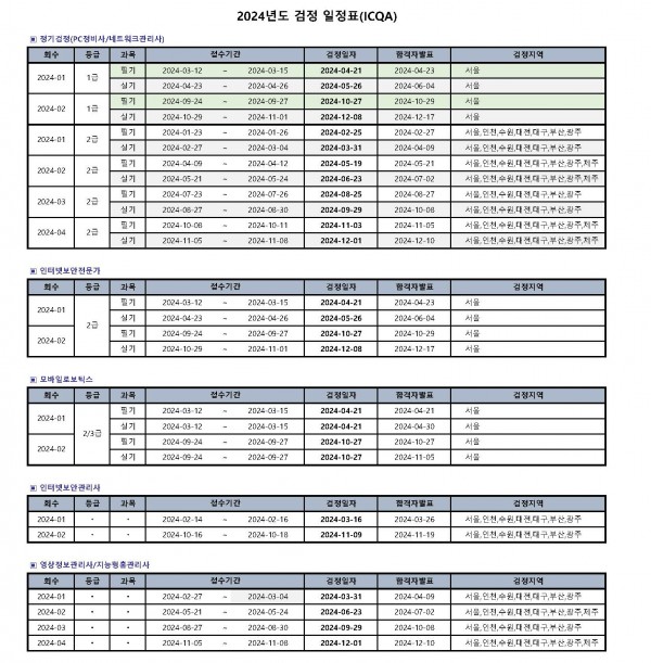 2024년부터 홈페이지 메뉴 [자격안내] -> 각 종목별 [시험일정] 에서 확인 가능합니다.