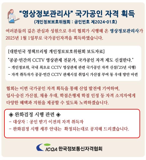 영상정보관리사 국가공인 획득 > 공지사항