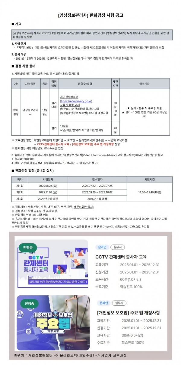 영상정보관리사 완화검정 시행 공고 > 공지사항